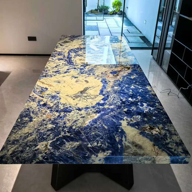 Termék neve: Bolívia kék gránit födém Gyári: Xiamen Wow Stone Co., Ltd. Eredeti ország: Bolívia MOQ: 1 PC Felület: Csiszolt, csiszolt Használatok: Belső és külső dekoráció sokoldalú, amelyet általában fali és padlólapokban, munkalapokban, hiúság tetején, lépcsőkben, oszlopokban, mozaikokban és még sok másban használnak, ideálisvá téve a különféle építési és tervezési projektekhez.