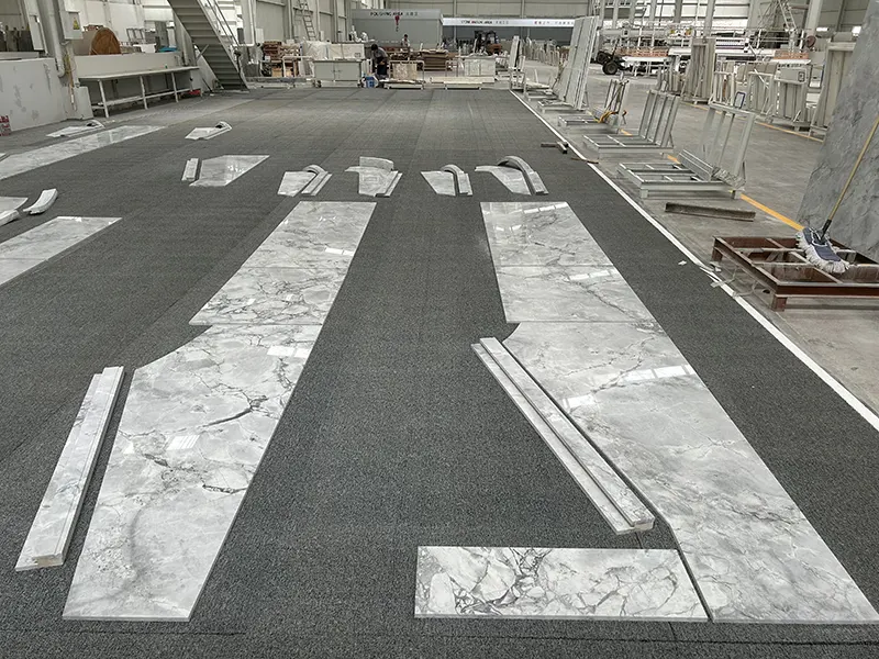 Csapatunk itt van, hogy minden lépésben segítsen Önnek, az első találkozótól a kézbesítésig. Ingyenes mintákat adunk ki, így megvásárolhatja és érezheti a követ. Ezenkívül digitálisan beolvassuk a tábláinkat, hogy a telepítés előtti előnézeteket biztosítsuk, és segítsünk a kész lépcsőzetes márvány kialakításának megjelenítésében.